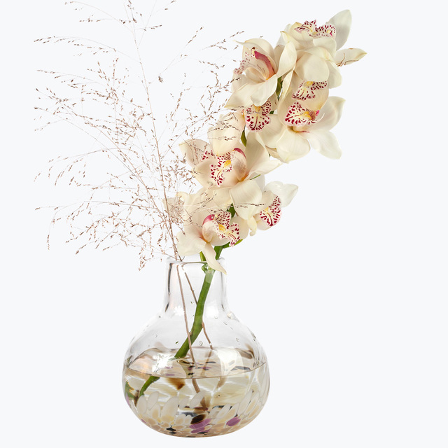 En nydelig julegave med en elegant orkide ranke og florlette strå i vår vakre krystallvase "Lykke". Vasen er munnblåst av håndtverkerne hos Magnor glassverk. En unik og spesielt flott gave til den du vil glede. Vis mer